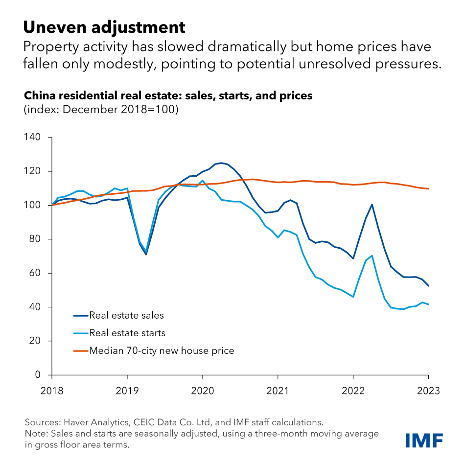 At the height of the COVID-19 pandemic in 2020, the Chinese government attempted to crack down on indebted real estate developers to reduce risk to the financial system. This effort pushed housing prices down and weaker companies defaulted.